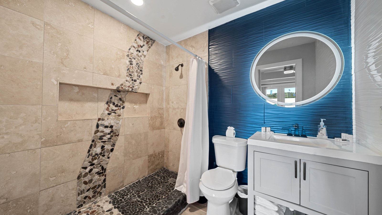 - Guest entry instructions: This rental utilizes an E-lock, a digital lock that requires a unique code to enter. This code is reset after each guest’s stay.