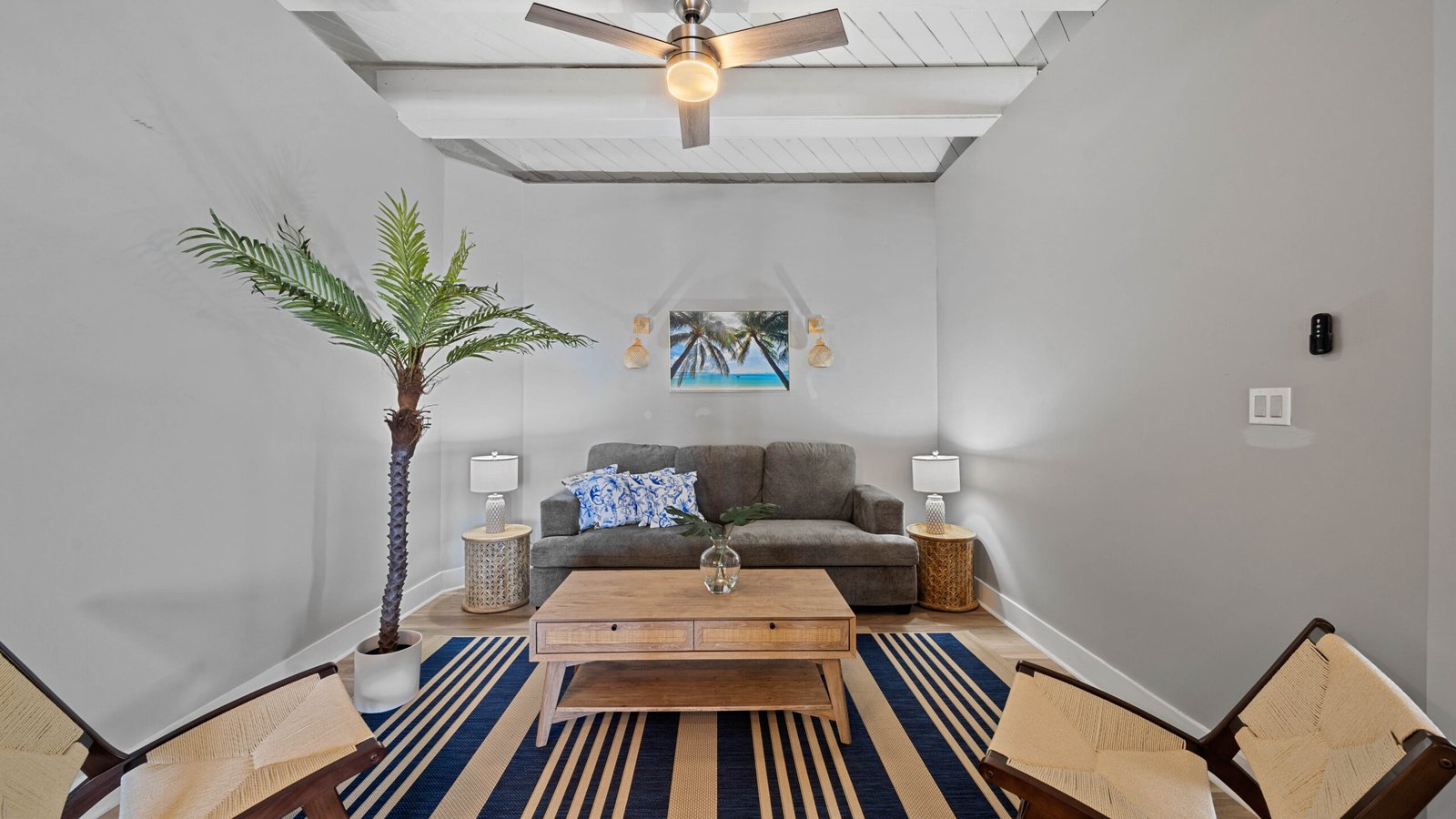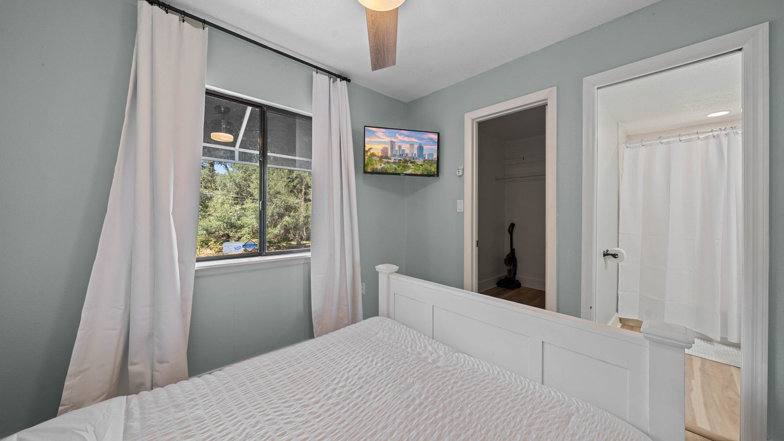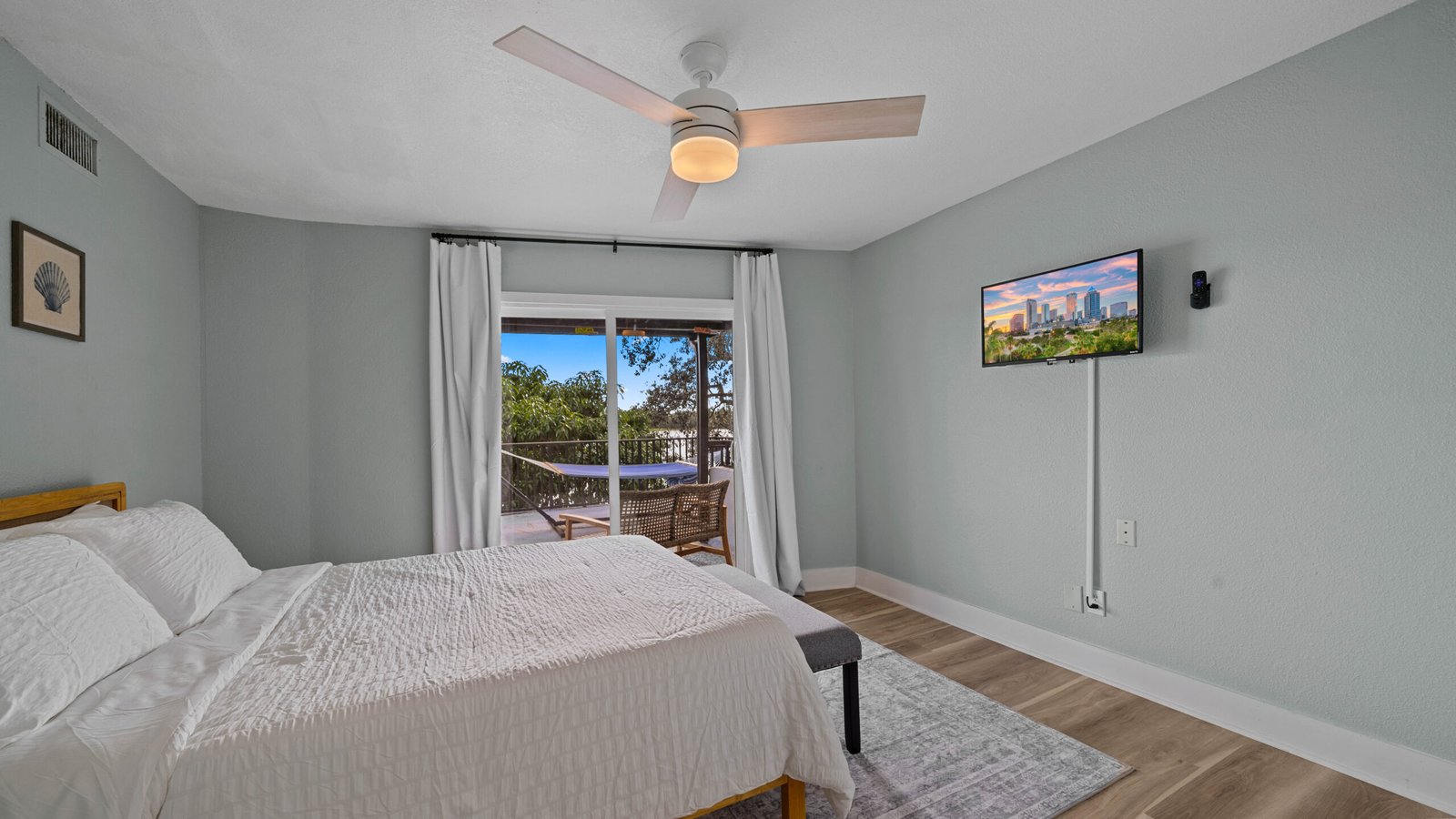 - All the bedrooms include ceiling fans, remote TVs, and luxury bedding to ensure a good night’s sleep for all guests.